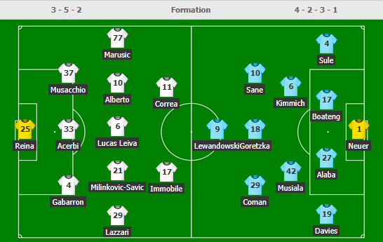 AEGoal cập nhật chính xác ĐỘI HÌNH RA SÂN trận Lazio vs Bayern Munich diễn ra lúc 03h00 ngày 24/02 trong khuôn khổ UEFA Champions League.