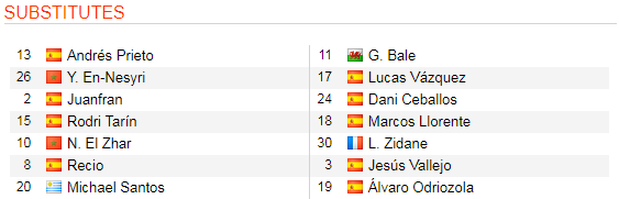 Real Madrid (4-3-3): Navas - Odriozola, Varane, Ramos, Marcelo - Modric, Casemiro, Kroos - Bales, Benzema, Asensio