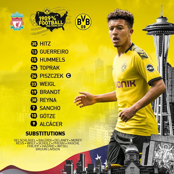 Dortmund (4-2-3-1): Burki - Piszczek, Toprak, Hummels, Schulz - Delaney, Witsel - Sancho, Reus, Hazard - Alcacer