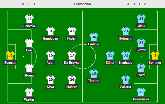 AEGoal cập nhật chính xác ĐỘI HÌNH RA SÂN trận Man City vs M'gladbach diễn ra lúc 03h00 ngày 17/03 trong khuôn khổ giải UEFA Champions League.