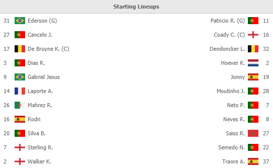 AEGoal cập nhật chính xác ĐỘI HÌNH RA SÂN trận Man City vs Wolves diễn ra lúc 03h00 ngày 03/03 trong khuôn khổ giải Ngoại hạng Anh.