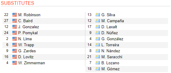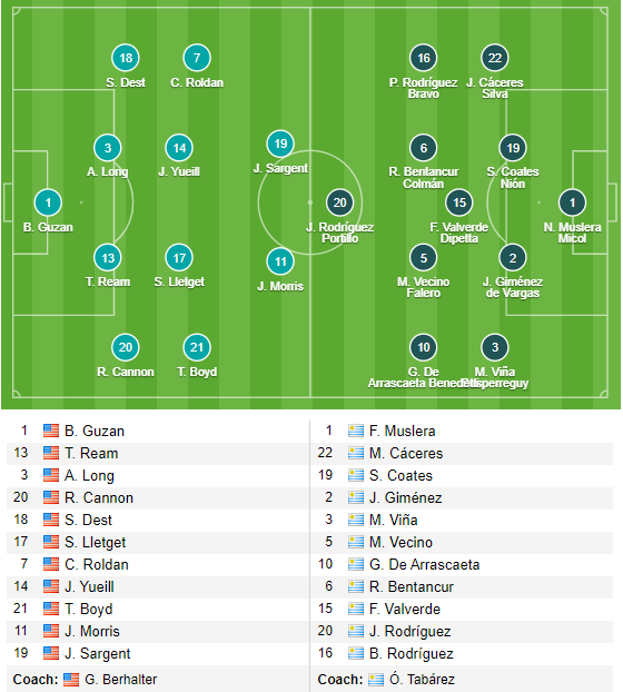 AEGoal.net cập nhật chính xác ĐỘI HÌNH RA SÂN trận Mỹ vs Uruguay diễn ra lúc 07h00 ngày 11/9 trong khuôn khổ Giao hữu Quốc tế.