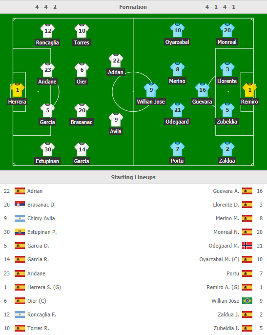 AEGoal.net cập nhật chính xác ĐỘI HÌNH RA SÂN trận Osasuna vs Sociedad diễn ra lúc 20h00 ngày 22/12 trong khuôn khổ vòng 18 - VĐQG Tây Ban Nha