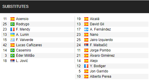 * Danh sách dự bị trận Real Madrid vs Cadiz, 23h30 ngày 17/10: VĐQG Tây Ban Nha