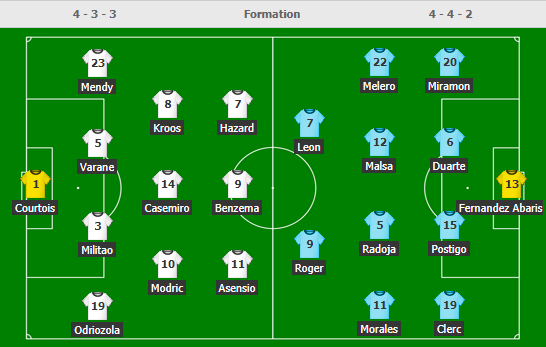 - Real Madrid: Vắng Rodrygo, Federico Valverde (chấn thương) và Nacho (Covid-19); Khả năng ra sân của Sergio Ramos và Lucas Vazquez còn bỏ ngỏ.