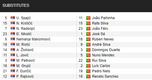* Danh sách dự bị trận Serbia vs Bồ Đào Nha, 02h45 ngày 28/3: Vòng loại World Cup 2022
