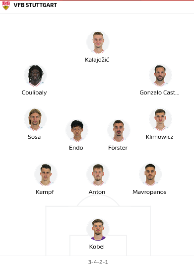 Stuttgart: Nicolás González, Al Ghaddioui, Mola, Wamangituka chấn thương. Mangala, Egloff đang bị đau nhẹ