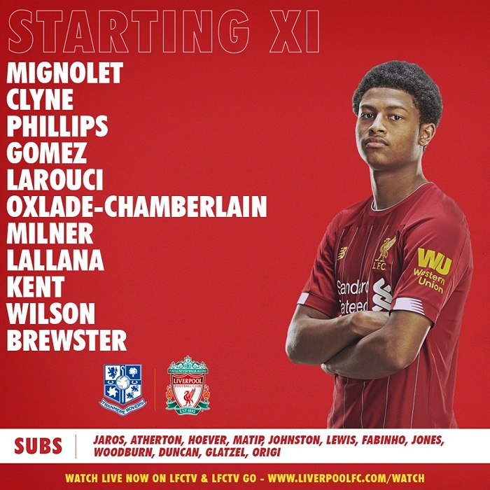 Liverpool (4-2-3-1): Mignolet - Gomez, Matip, Van den Berg, Milner - Fabinho, Oxlade-Chamberlain - Jones, Lallana, Wilson - Brewster