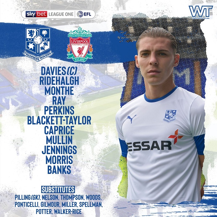 Tranmere Rovers (4-4-2): Pilling - Caprice, Monthe, Ray, Ridehalgh - Blackett-Taylor, Perkins, Potter, Morris - Jennings, Miller