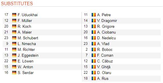 - Trận đấu: U21 Đức vs U21 Romania (Bán kết - VĐ U21 Châu Âu 2019)