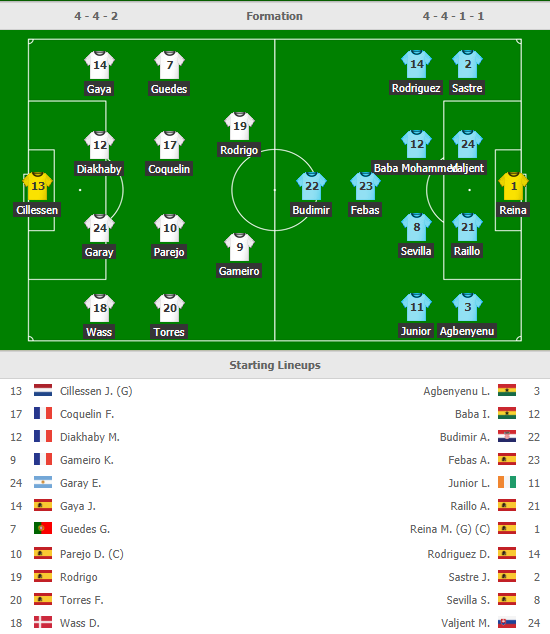 - Valencia: Vắng Carlos Soler và Cristiano Piccini vì chấn thương.