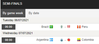 Lịch thi đấu và tỷ lệ bán kết Copa America 2021