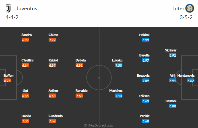 +Juventus thắng 23 trận hoà 19 và thua 12 trận trong tổng cộng 54 lần đối đầu với Inter Milan trong lịch sử đối đầu.
