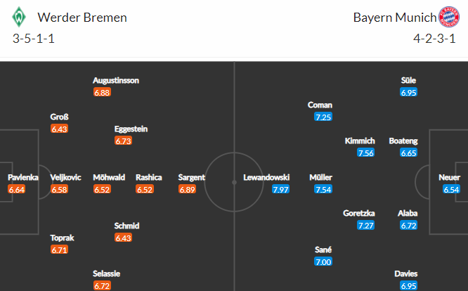Thông tin lực lượng và đội hình dự kiến trận Bremen vs Bayern Munich (21h30)