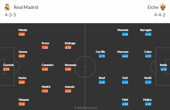 Thông tin lực lượng và đội hình dự kiến trận Real Madrid vs Elche (22h15)