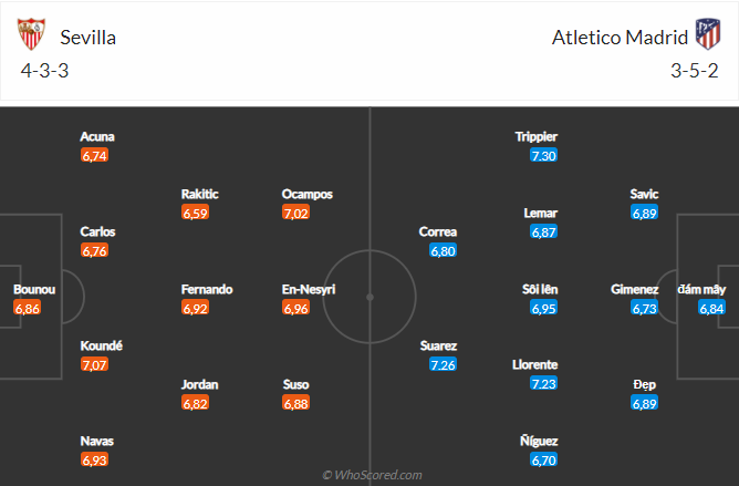 Thông tin lực lượng và đội hình dự kiến trận Sevilla vs Atletico Madrid (02h00)