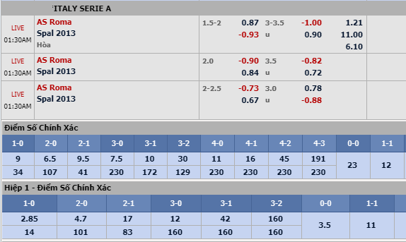 Dự đoán, nhận định, soi kèo AS Roma vs Spal (Vòng 15 VĐQG Italia). AS Roma rất có duyên với kèo châu Á chấp chính 1 3/4.