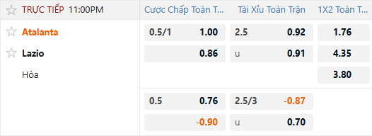 Tỷ lệ kèo Atalanta vs Lazio