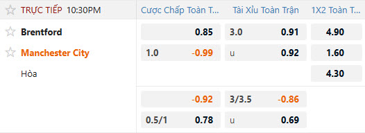 Man City là đội được đánh giá cao hơn ở trận đấu này với mức chấp lên tới 3/4. Đó là mức chấp đáng tin cậy với đội khách. Họ thắng kèo 4/6 trận từ đầu mùa tại giải Ngoại hạng, hơn 1 trận so với Brentford. Bầy ong có thể sẽ gặp khó.