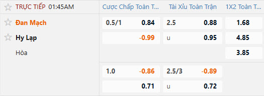 Tỷ lệ kèo Đan Mạch vs Hy Lạp