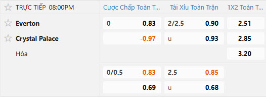 Tỷ lệ kèo Everton vs Crystal Palace