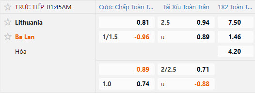 Tỷ lệ kèo Lithuania vs Ba Lan