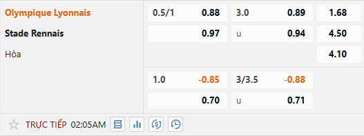 Được thi đấu trên sân nhà và cũng đang đứng trên đối thủ ở bảng xếp hạng nên Lyon vẫn được đánh giá là đội cửa trên với kèo chấp đang là -3/4. Ở lượt đi mùa này trên sân nhà Rennes đã thắng đậm trước Lyon với tỷ số 3-0.
