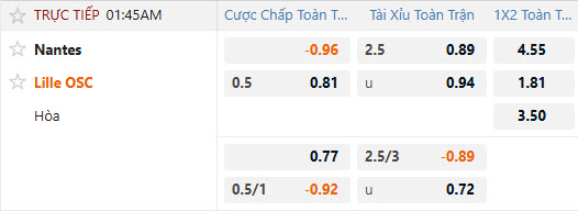 Tỷ lệ kèo Nantes vs Lille