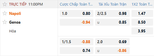 Tỷ lệ kèo Napoli vs Genoa