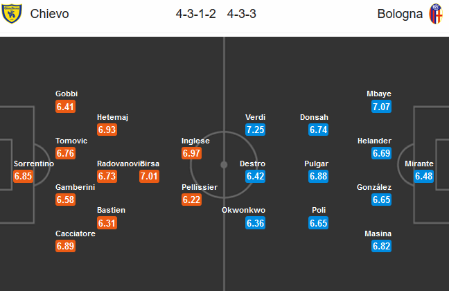 ChievoVerona: Castro (13/2 tiền vệ), Meggiorini (8/0 tiền đạo)
