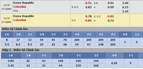 Trên thực tế, với quá nhiều xáo trộn về đội hình, tuyển Colombia cũng bị giới phân tích nghi ngờ về động lực và tinh thần thi đấu thực sự của họ khi đây chỉ là trận đấu giao hữu không đặt nặng kết quả thắng thua. Chỉ số xuất hiện trên thị trường giao dịch châu Á cũng cho thấy Colombia không thực sự được đánh giá cao với kèo chính chấp 1/4 hiện nay. Nó chưa tưng xứng với vị trí thứ 13 trên BXH FIFA mà đại diện đến từ Nam Mỹ đang có so với Hàn Quốc chỉ đứng thứ 62.