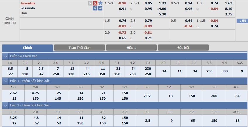 Tổng bàn thắng cả trận: Tay săn bàn chủ lực Dybala vẫn chưa trở lại, Juventus vừa thông báo họ tiếp tục không có sự phục vụ của Cuadrado do chấn thương. Hai trường hợp vắng mặt trên ảnh hưởng lớn đến chất lượng trên hàng công của đội chủ nhà. Hơn nữa, việc có liên tiếp 5 trận gần nhất của Juventus gần đây đều khép lại với tối đa 2 bàn thắng và 6/8 trận đối đầu gần đây có kịch bản tương tự cũng là yếu tố tin vào kịch bản nghèo nàn bàn thắng. Dưới 2 3/4 bàn cả trận.