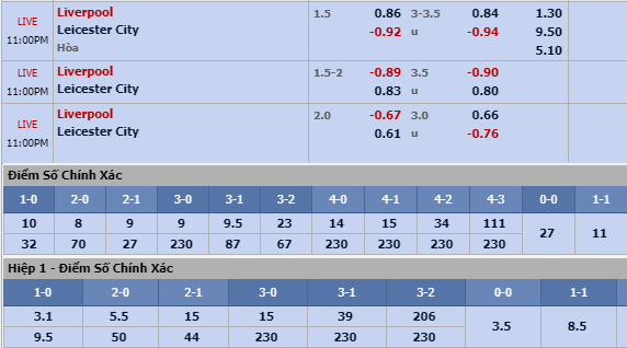 Cũng phải nói thêm rằng, thành tích tỷ lệ châu Á của Leicester City kể từ đầu mùa rất đáng lo ngại. Các nhà cựu vô địch mới tích lũy được 40% số trận vượt qua kèo châu Á. Chỉ riêng trên sân khách, Bầy cáo là đội có thành tích trên sàn khớp lệnh thấp nhất giải với vỏn vẹn 30% số trận mang lại niềm vui cho giới mộ điệu. Trong khi đó, Liverpool đang là điểm đến rất tiềm năng khi họ vừa vượt qua tỷ lệ tới 11 trong tổng số 14 trận gần nhất.
