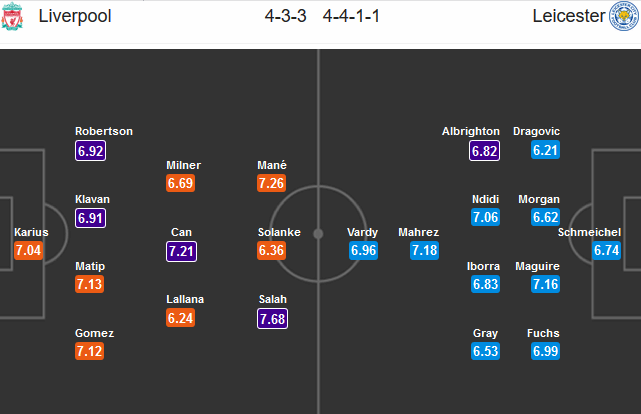 - Hai đội đã gặp nhau tổng cộng 95 trận ở các giải đấu chính thức, Liverpool thắng 39 trận, Leicester City thắng 33 trận và có 22 trận hòa.