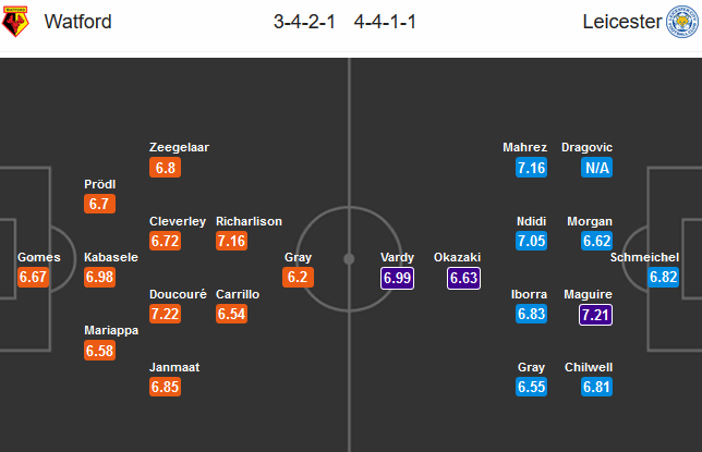Trong khi đó, Watford đang lao dốc thảm hại vè mọi yếu tố. Trong 6 vòng gần nhất ở giải Ngoại hạng Anh, đội chủ nhà chỉ giành được duy nhất 1 điểm, còn lại thua tới 5 trận là hình ảnh cho thấy họ đang thực sự bất ổn. Tình hình hiện tại vẫn chưa có chuyển biến tích cực với Watford khi họ liên tiếp thua những đối thủ tưởng chừng đồng cân đồng lạng như Burnley, Crystal Palace, Huddersfield hay Brighton. Nhìn vào quá khứ, Watford lép vế ở thành tích đối đầu khi chỉ biết đến hòa và thua 5/6 trận gần nhất, trong đó có 4 thất bại.