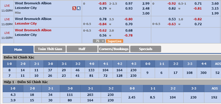 Dự đoán, nhận định, soi kèo West Brom vs Leicester City (Vòng 30 Ngoại hạng Anh).Giới điều khiển thị trường đang có quan điểm nghi ngờ vào chiến thắng dành cho Leicester City.