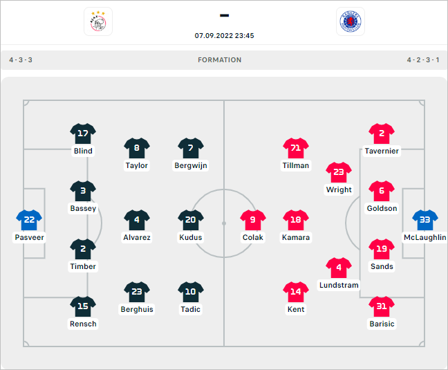 AEGoal cập nhật chính xác ĐỘI HÌNH RA SÂN trận Ajax vs Rangers diễn ra lúc 23h45 ngày 07/09 trong khuôn khổ vòng bảng cúp C1 Châu Âu.