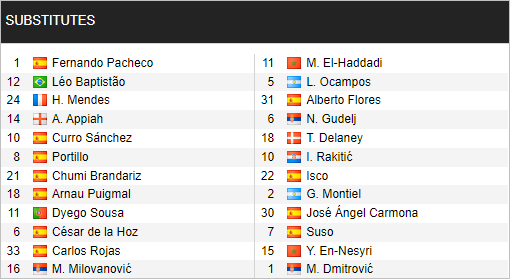 - Sevilla: Jesús Corona chấn thương; Marcos Acuna bị treo giò; Suso không sung sức.