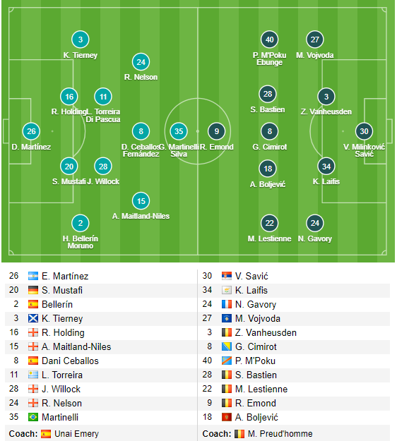 AEGoal.net cập nhật chính xác ĐỘI HÌNH RA SÂN trận Arsenal vs Standard Liege diễn ra lúc 02h00 ngày 04/10 trong khuôn khổ Bảng F - Europa League.