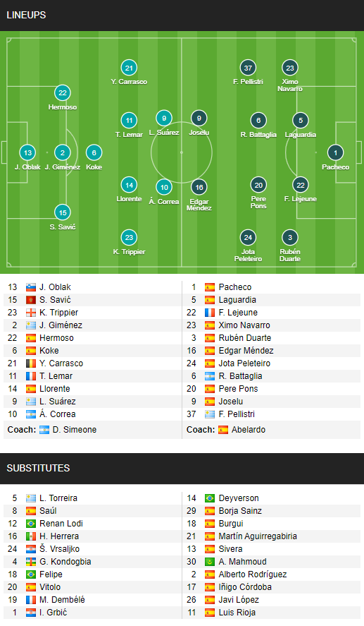 AEGoal cập nhật chính xác ĐỘI HÌNH RA SÂN trận Atletico Madrid vs Alaves diễn ra lúc 00h30 ngày 22/03 trong khuôn khổ giải VĐQG Tây Ban Nha.