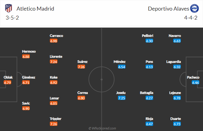 ĐỘI HÌNH RA SÂN trận Atletico Madrid vs Alaves, 00h30 ngày 22/03: VĐQG Tây Ban Nha