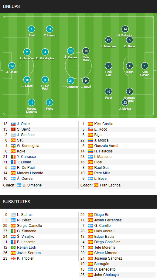 AEGoal cập nhật chính xác ĐỘI HÌNH RA SÂN trận Atletico Madrid vs Elche diễn ra lúc 00h30 ngày 23/8 trong khuôn khổ giải VĐQG Tây Ban Nha.