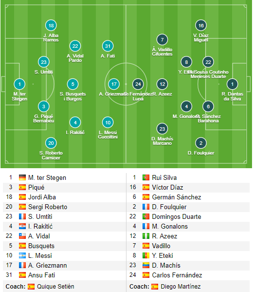 - Barcelona: Vắng Ousmane Dembele, Luis Suarez (chấn thương) và Frenkie De Jong (treo giò); Khả năng ra sân của Arthur còn bỏ ngỏ.
