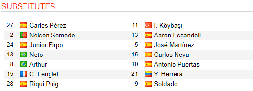- Granada: Vắng Neyder Lozano, Fede Vico, Quini (chấn thương) và Angel Montoro (treo giò); Khả năng ra sân của Yangel Herrera và Yan Eteki còn bỏ ngỏ.