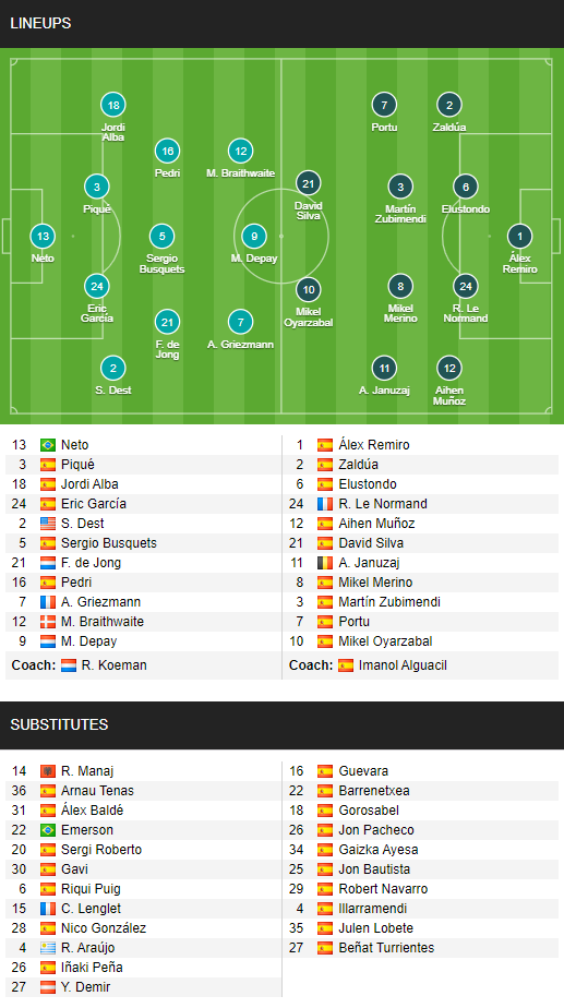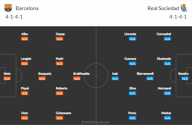AEGoal cập nhật chính xác ĐỘI HÌNH RA SÂN trận Barcelona vs Sociedad diễn ra lúc 01h00 ngày 15/8 trong khuôn khổ giải VĐQG Tây Ban Nha.