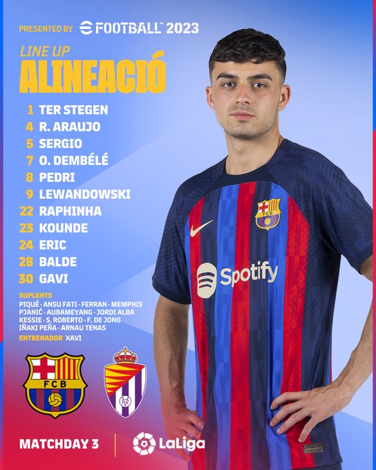 AEGoal cập nhật chính xác ĐỘI HÌNH RA SÂN trận Barcelona vs Valladolid diễn ra lúc 00h30 ngày 29/08 trong khuôn khổ giải VĐQG Tây Ban Nha.