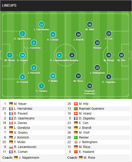 - Dortmund: Meunier, Dahoud, Hummels, Tigges, Morey, Kobel và Reyna chấn thương; Witsel cũng vắng mặt trong khi Malen và Schmelzer không sung sức.