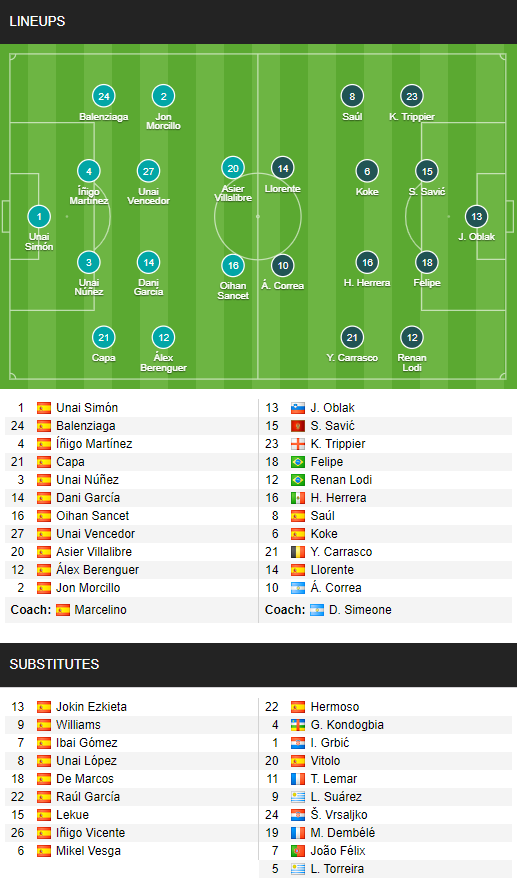 ĐỘI HÌNH RA SÂN trận Bilbao vs Atletico Madrid, 02h00 ngày 26/4: VĐQG Tây Ban Nha