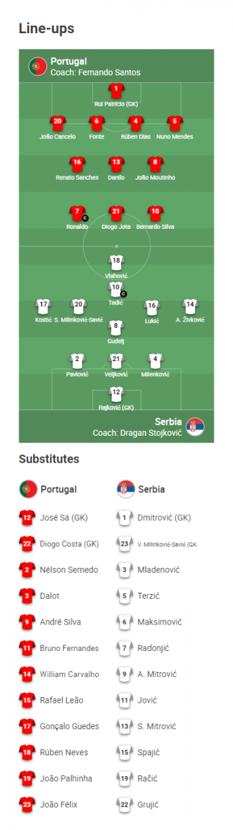 AEGoal cập nhật chính xác ĐỘI HÌNH RA SÂN trận Bồ Đào Nha vs Serbia diễn ra lúc 02h45 ngày 15/11 trong khuôn khổ vòng loại World Cup 2022 khu vực châu Âu.