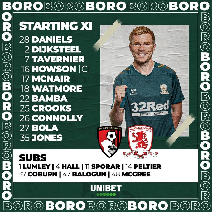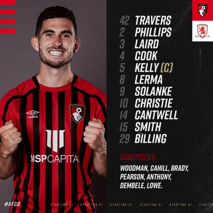 AEGoal cập nhật chính xác ĐỘI HÌNH RA SÂN trận Bournemouth vs Middlesbrough diễn ra lúc 21h00 ngày 15/4 trong khuôn khổ giải Hạng Nhất Anh.
